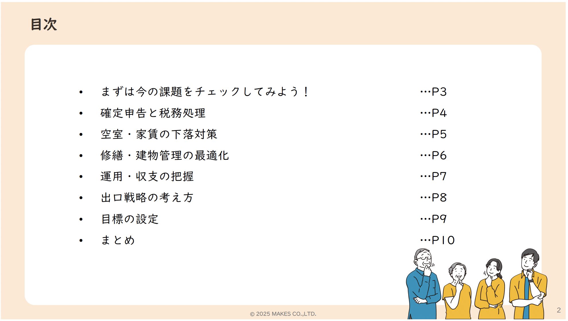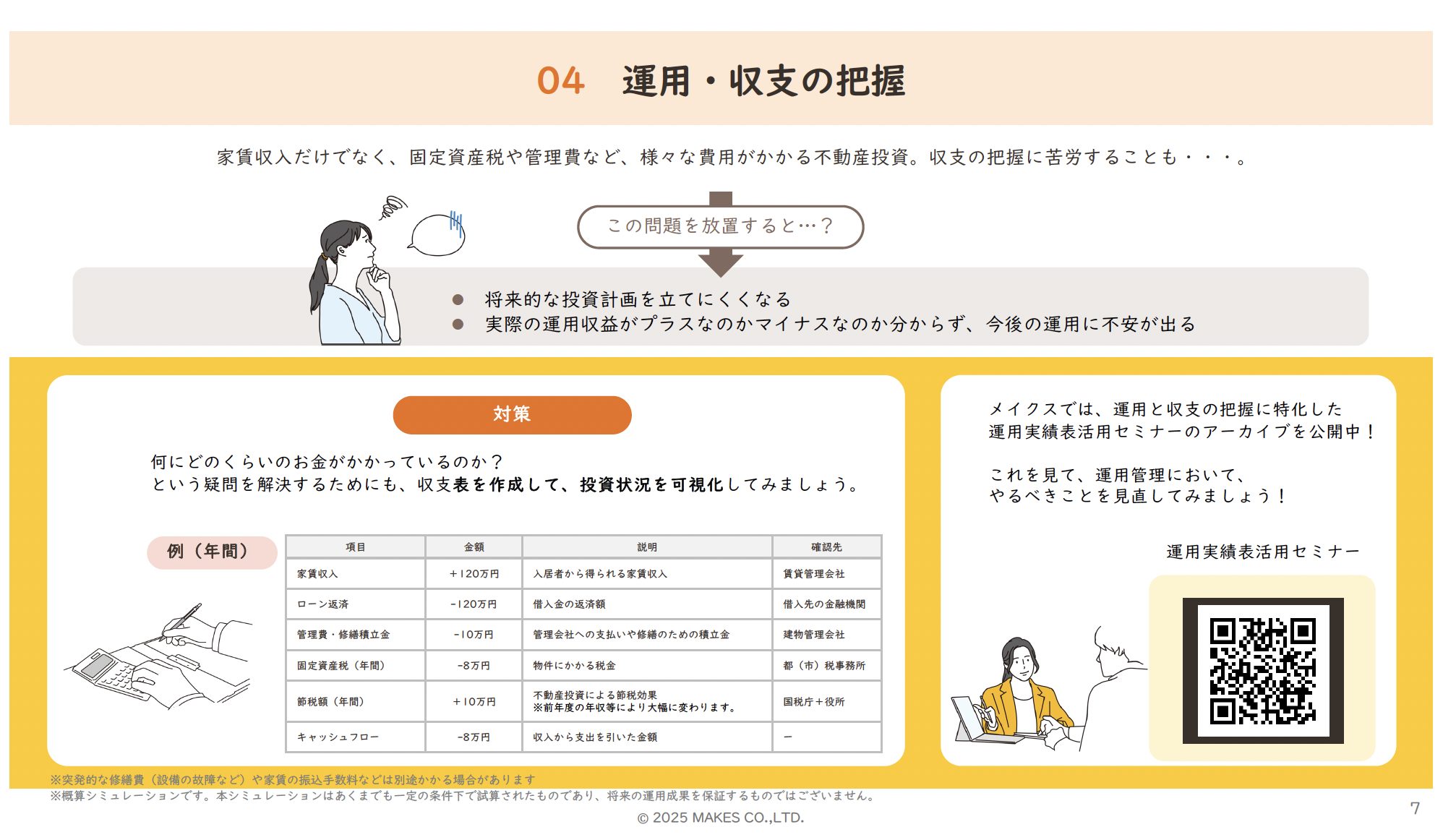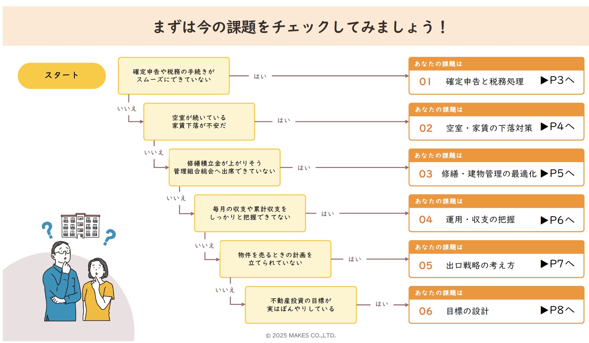 課題のチェックから確定申告、建物管理の最適化、売却戦略の考え方などさまざまな「困った」の対策をアドバイス。